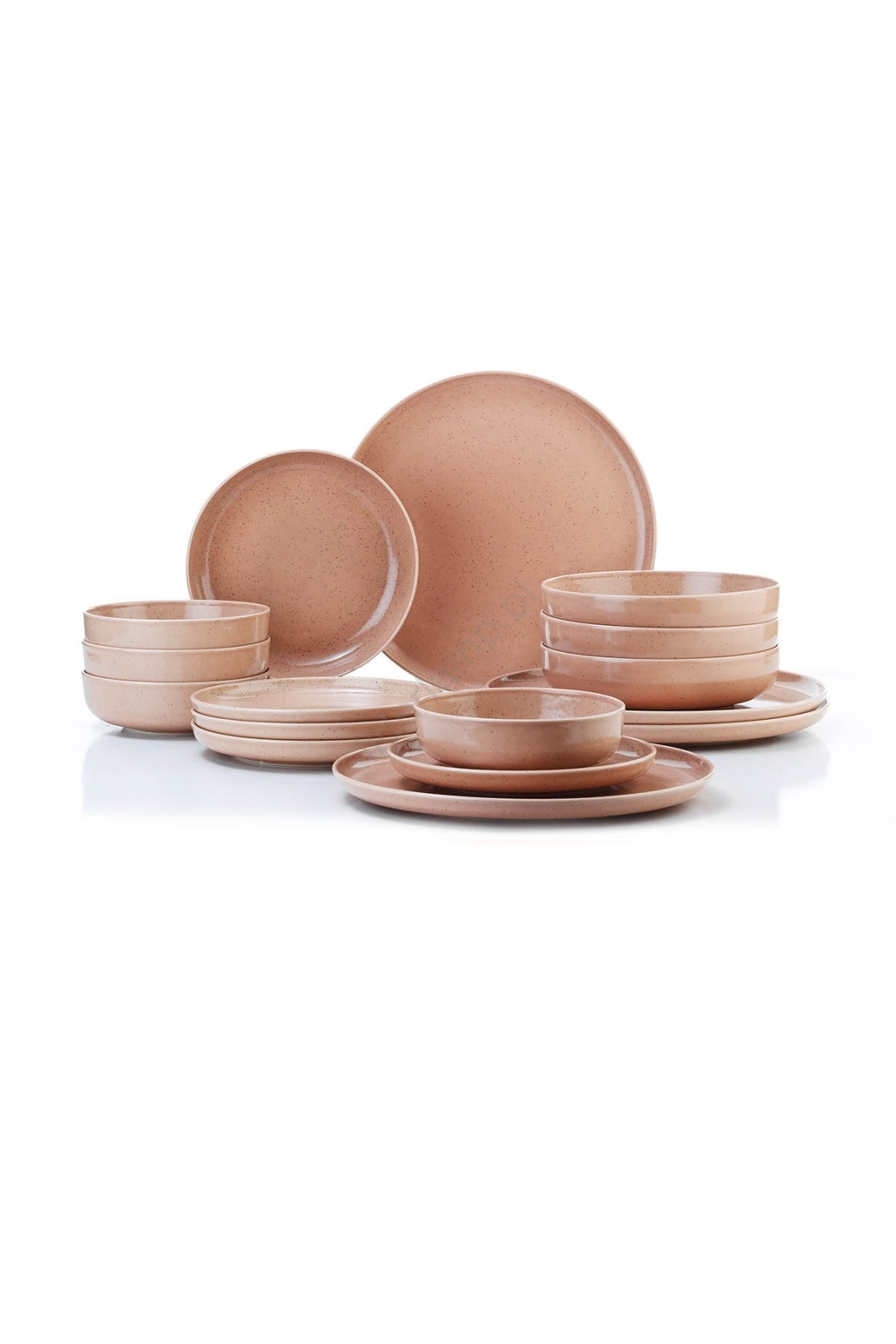 16-częściowy komplet zastawy stołowej, brązowo-beżowy, porcelana