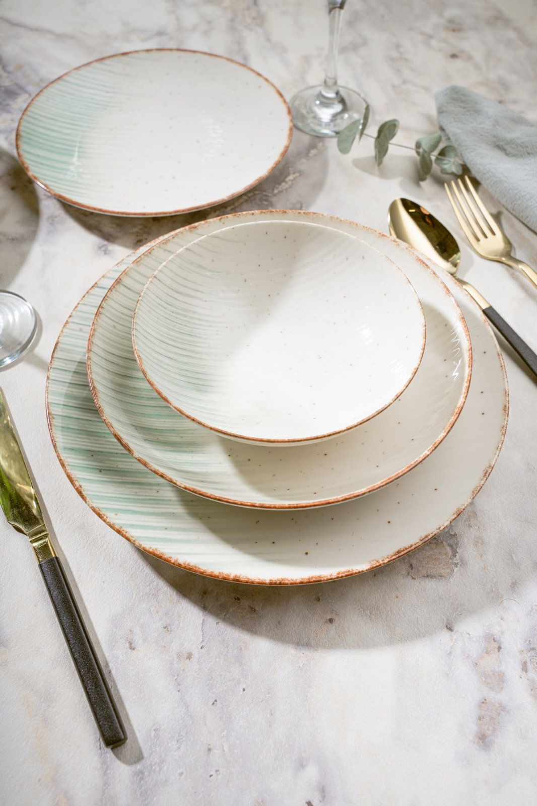 ReviewsWidget_ReviewsAboutUs 24-częściowy zestaw obiadowy, biały/zielony, porcelana | Liderlamp.pl