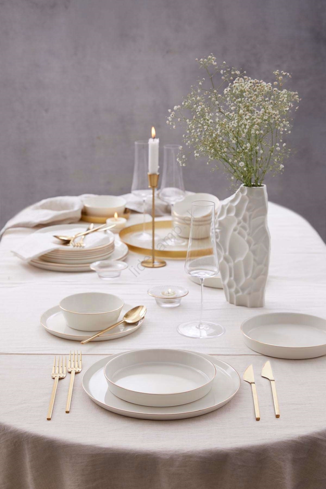 ReviewsWidget_ReviewsAboutUs 24-częściowy zestaw obiadowy, biały/złoty, porcelana | Liderlamp.pl