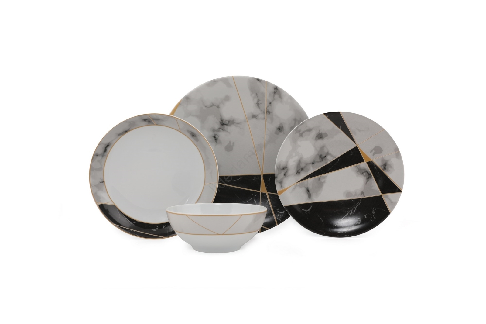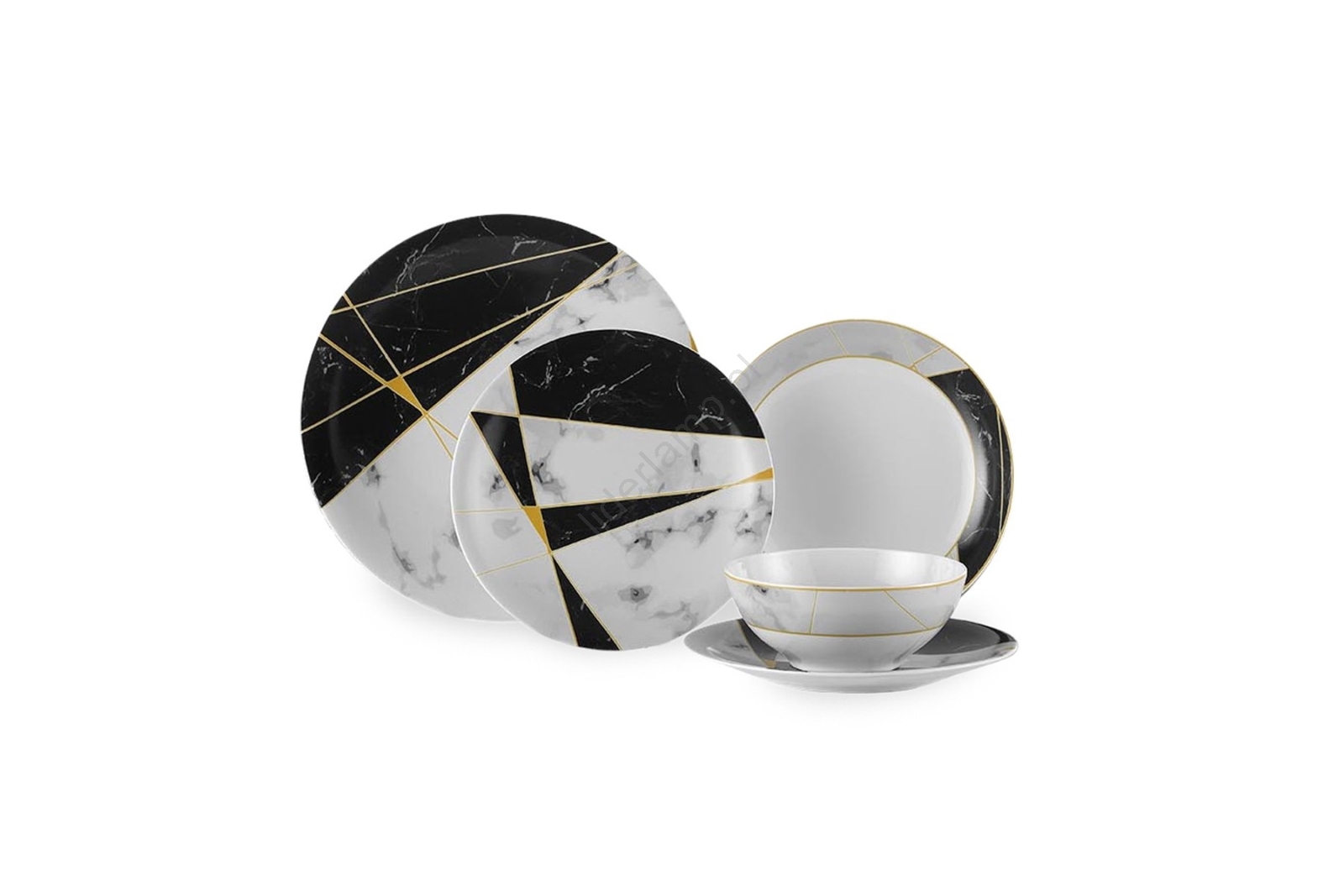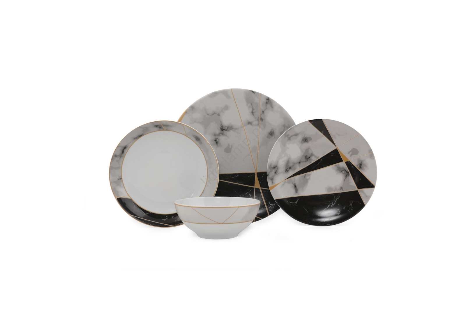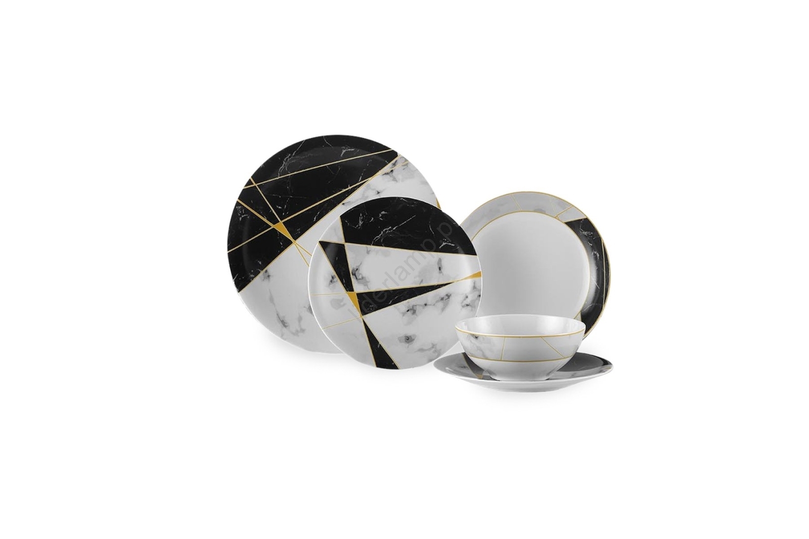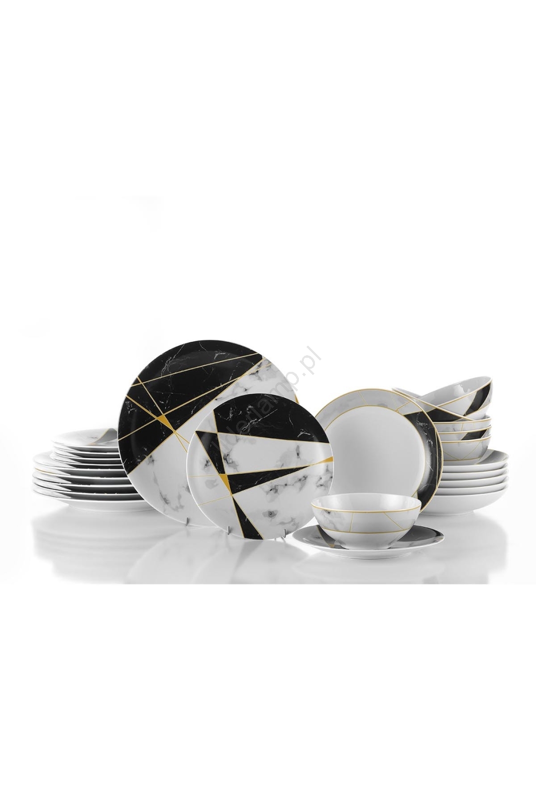 ReviewsWidget_ReviewsAboutUs 24-częściowy zestaw obiadowy — czarny/biały/złoty, porcelana | Liderlamp.pl