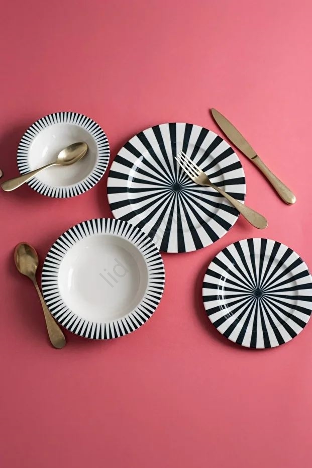ReviewsWidget_ReviewsAboutUs 24-częściowy zestaw obiadowy, porcelanowy, biały/czarny | Liderlamp.pl