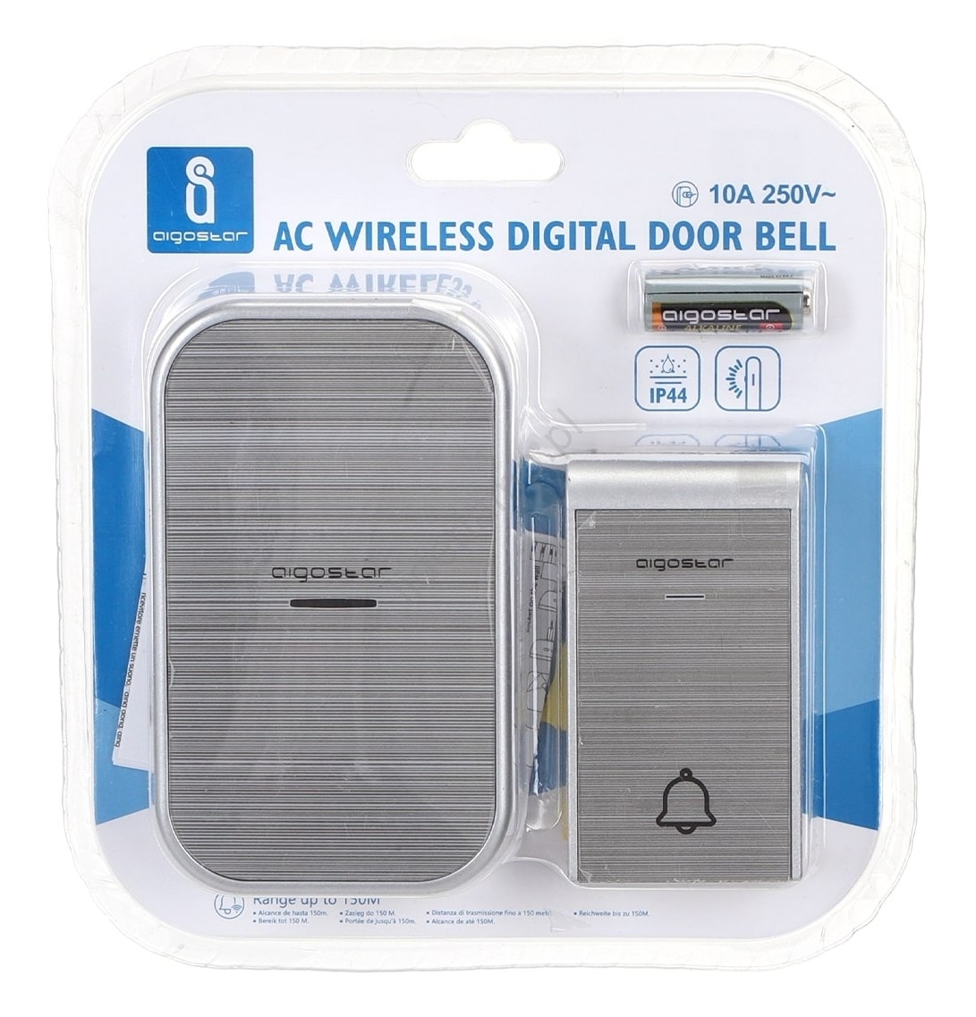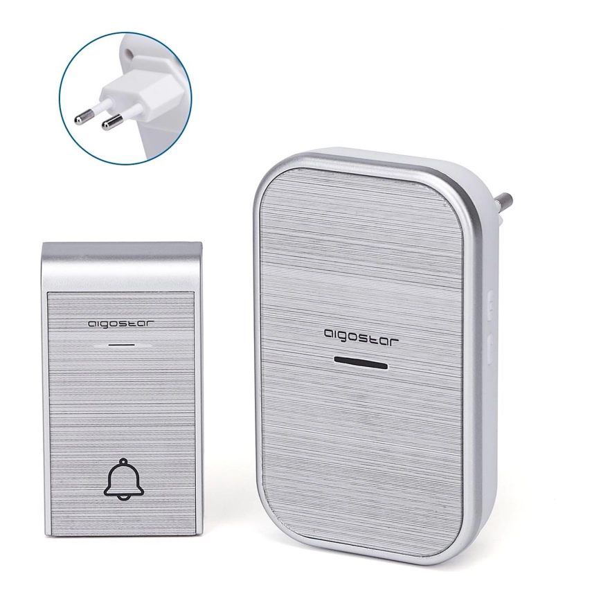 Aigostar - Bezprzewodowy dzwonek do gniazdka 230V/12V IP44 srebrny