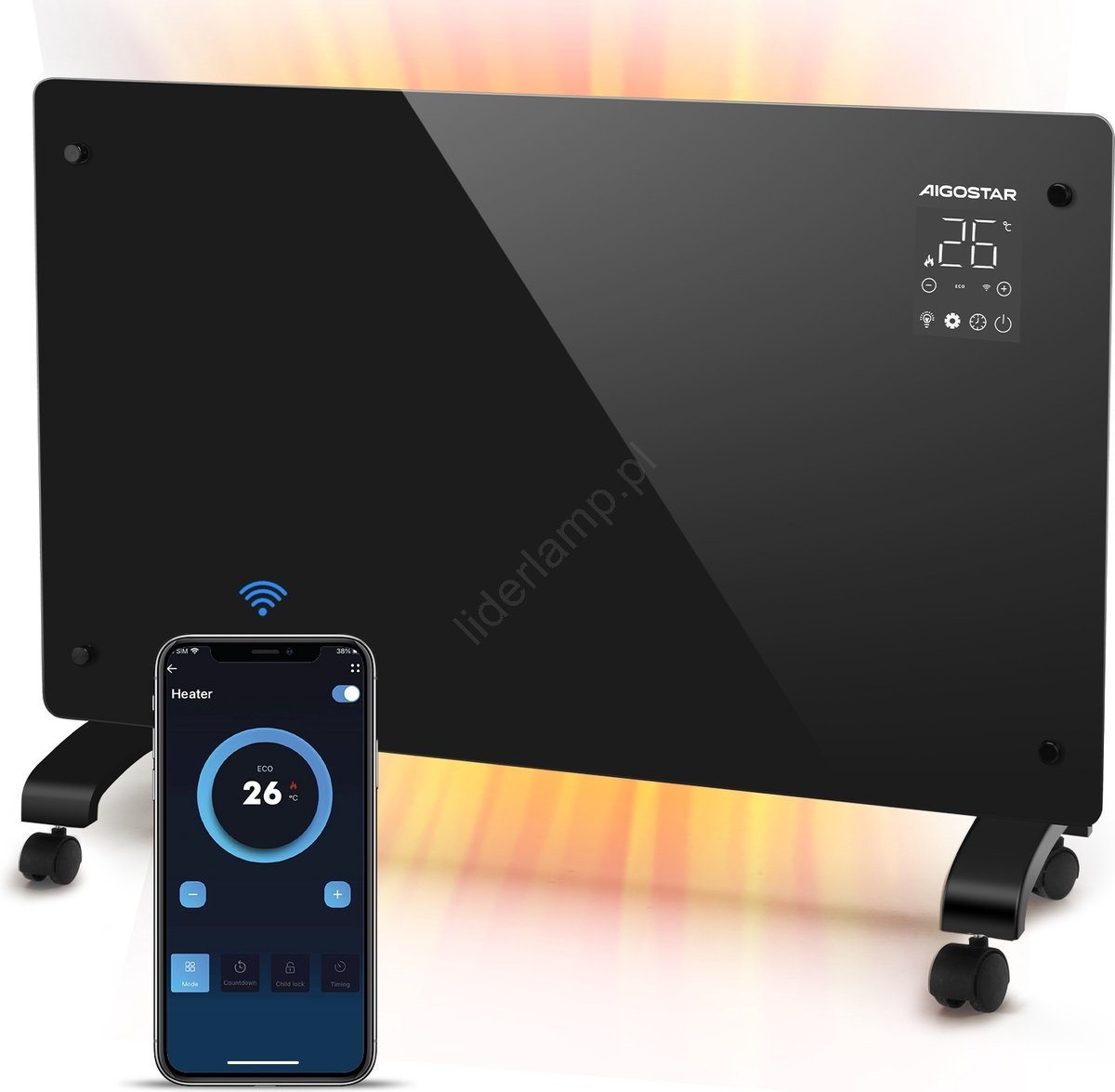 Aigostar - Inteligentny elektryczny grzejnik konwektorowy z wyświetlaczem LCD ECO/1000/2000W Wi-Fi