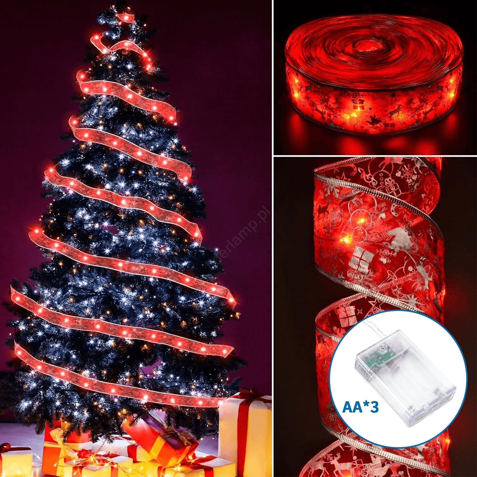 • Aigostar - łańcuch świetlny LED 50 diod, 5 m, zasilanie 3×AA, ciepła biała / czerwona