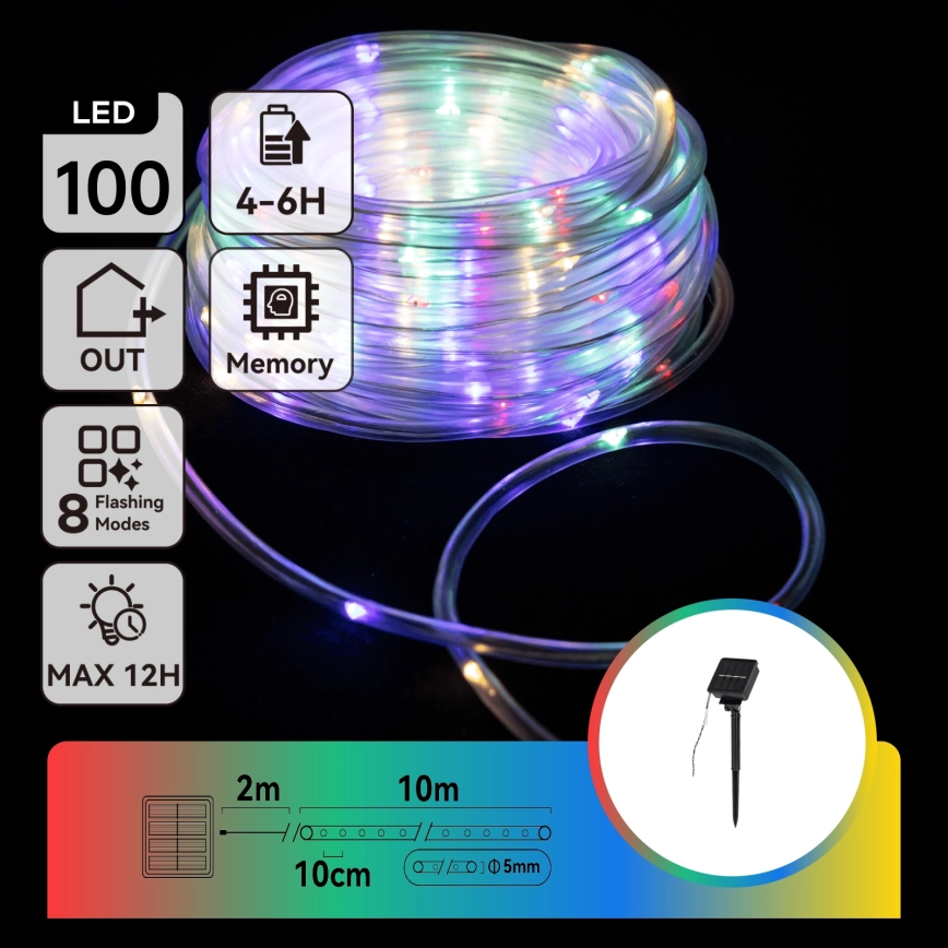 Aigostar - Solarny łańcuch LED 100xLED/8 funkcji 12m IP65 800 mAh wielokolorowy