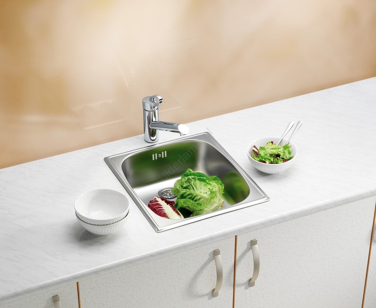 • Zlewozmywak posiada jedną komorę i dzięki kompaktowym wymiarom nadaje się również do mniejszych przestrzeni.
