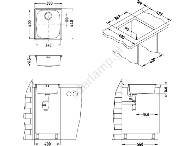 • Zlewozmywak kuchenny ze stali nierdzewnej o klasycznym designie.