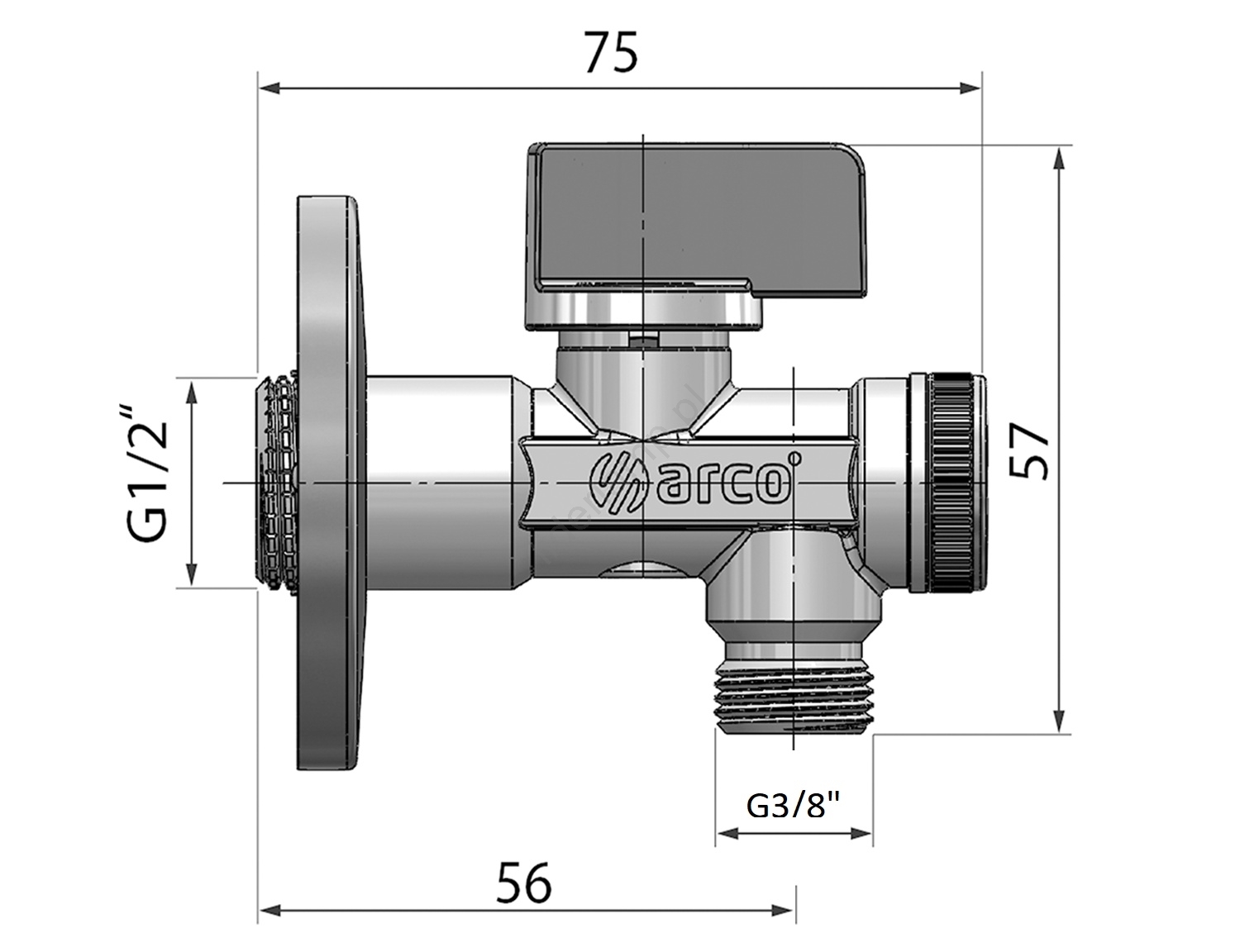 Arco - zawór kątowy z filtrem, chrom błyszczący