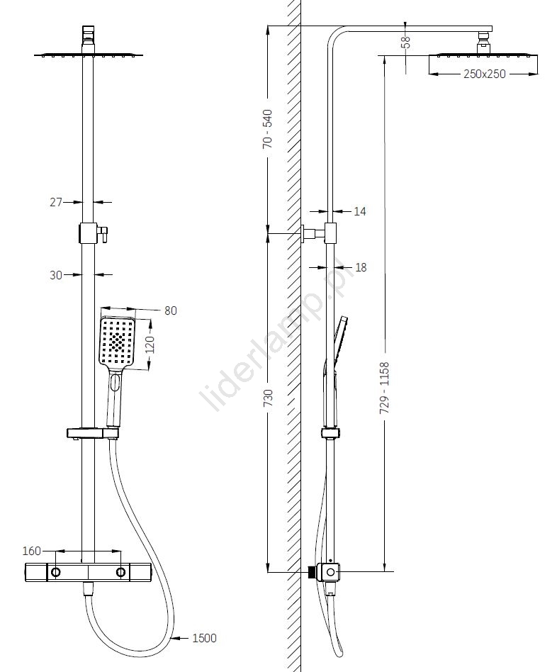 • Zestaw składa się z baterii termostatycznej z masywnego mosiądzu.