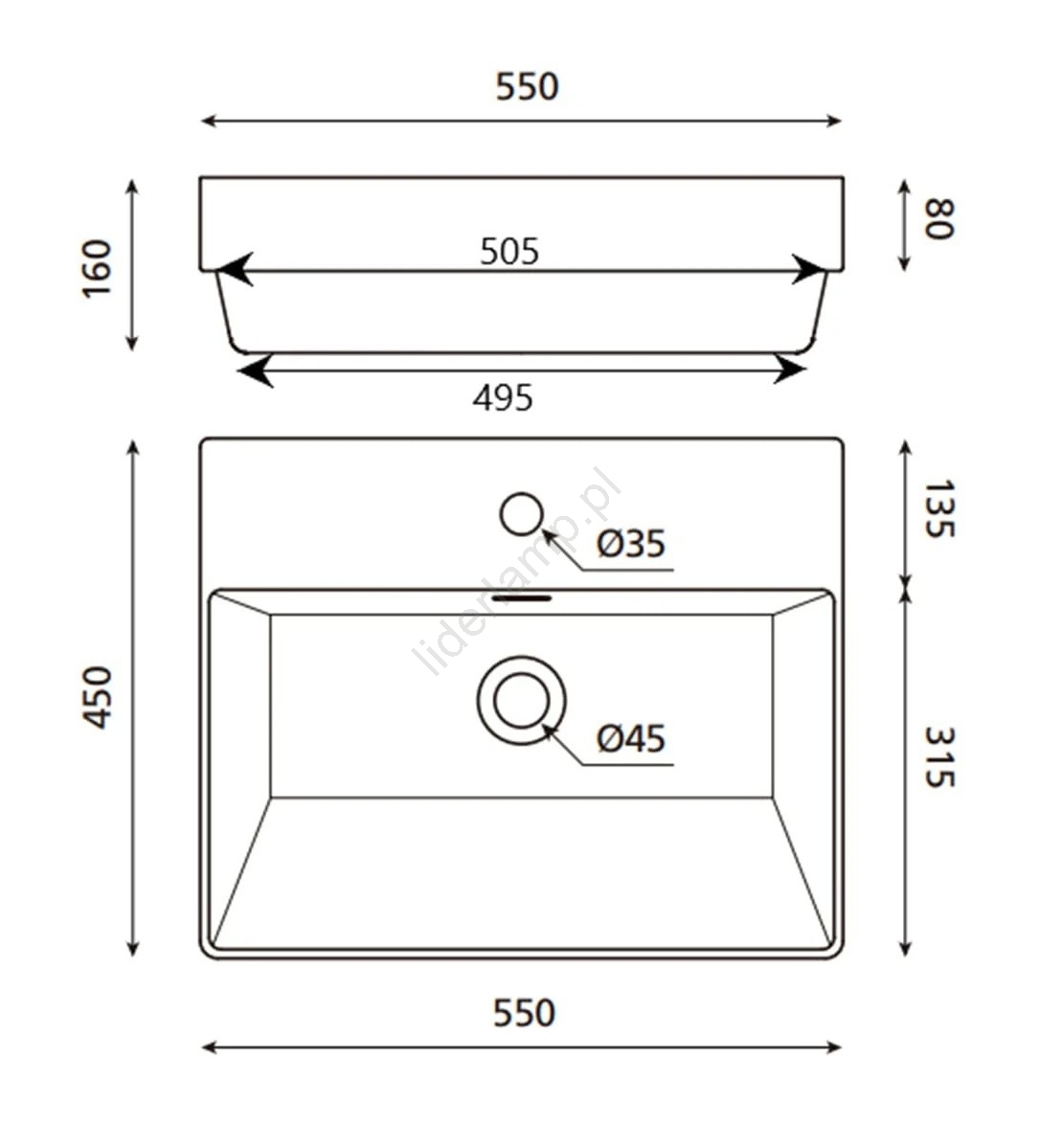 • Nowoczesna i elegancka umywalka z przelewem.
