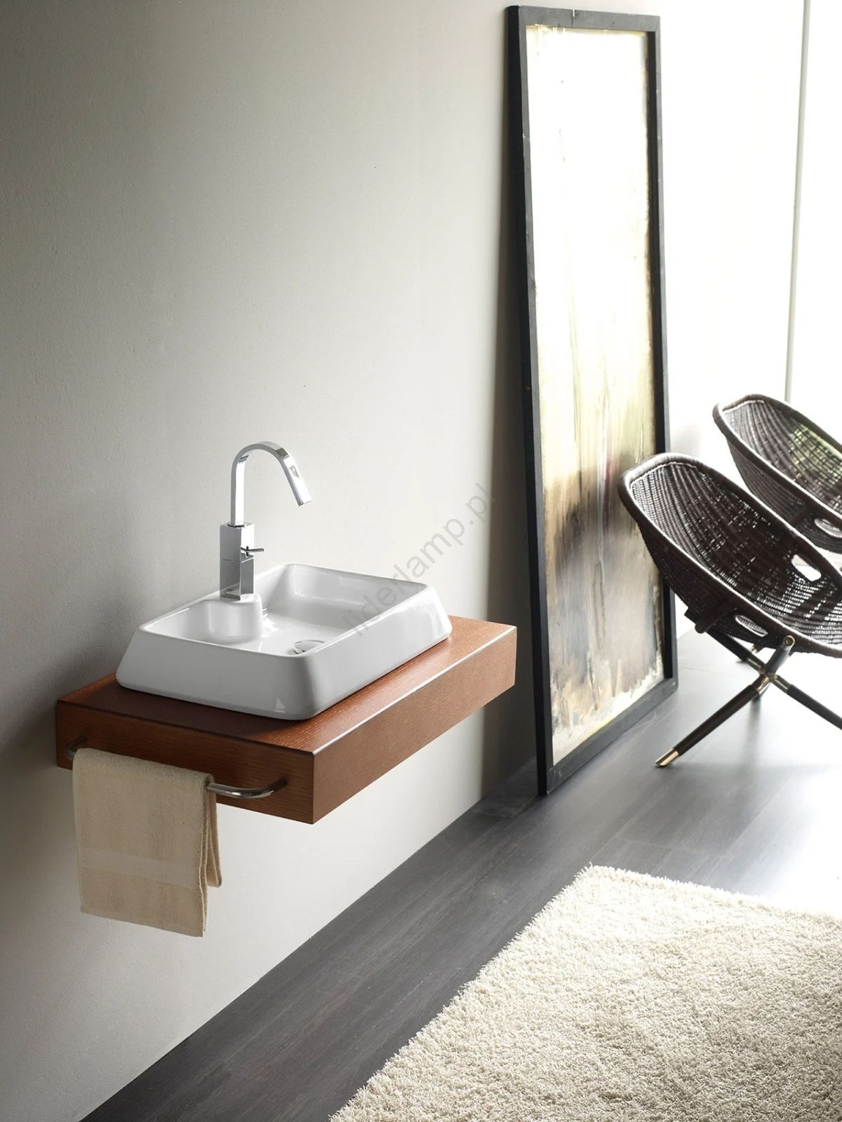• Nowoczesna i elegancka umywalka bez przelewu.