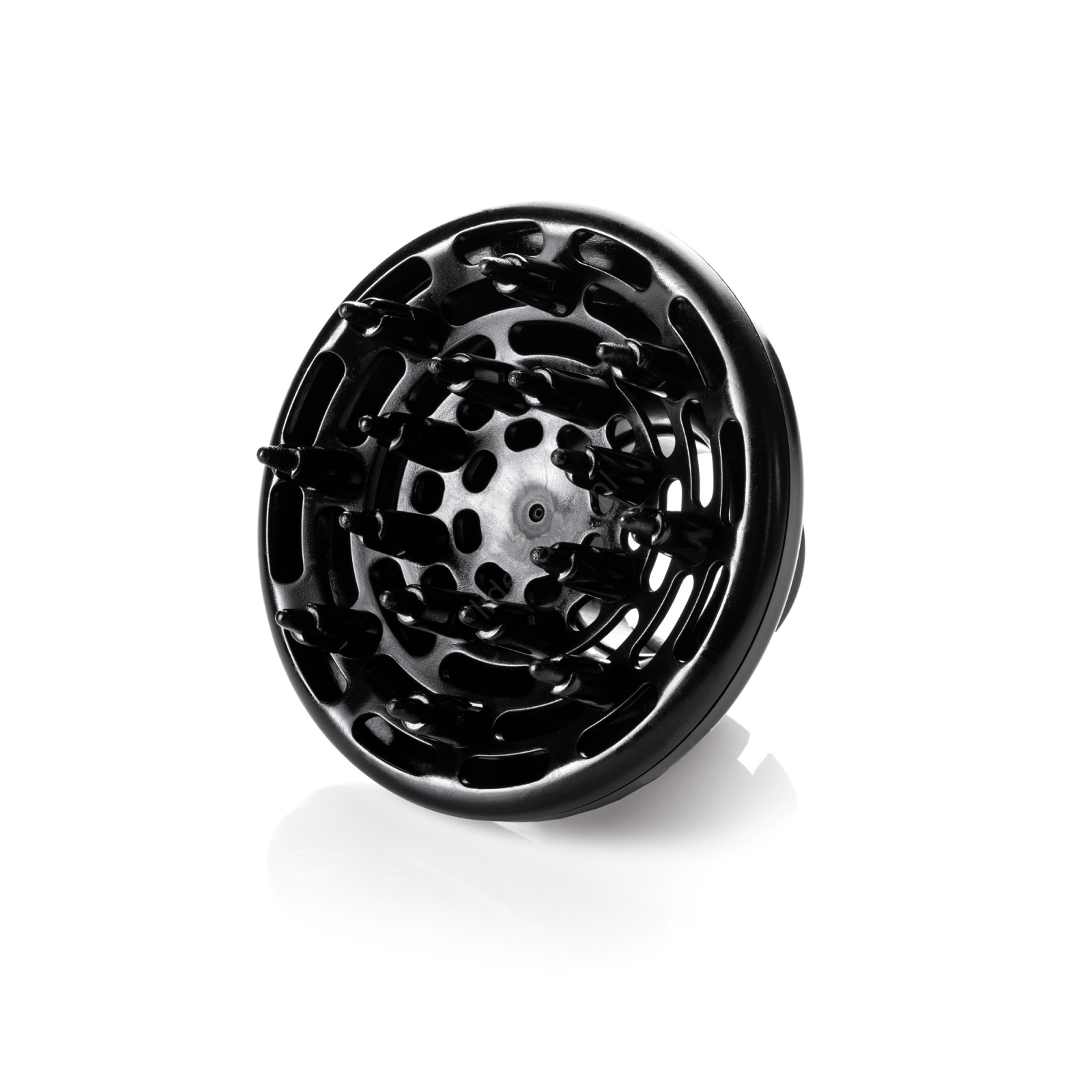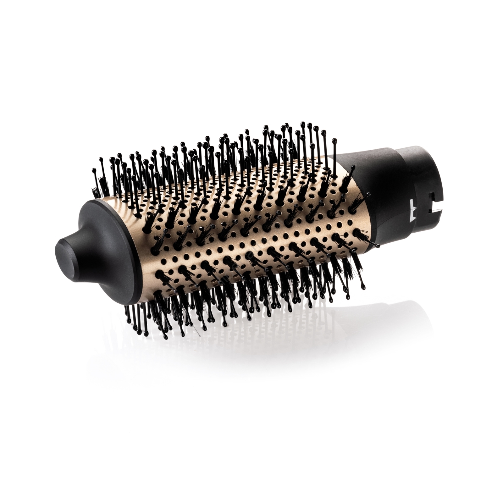 • W zestawie znajduje się 8 nasadek: szczotka zwiększająca objętość, okrągła szczotka 32 mm, okrągła szczotka 50 mm, lokówka 19 mm, szczotka do rozczesywania, dyfuzor i koncentrator.