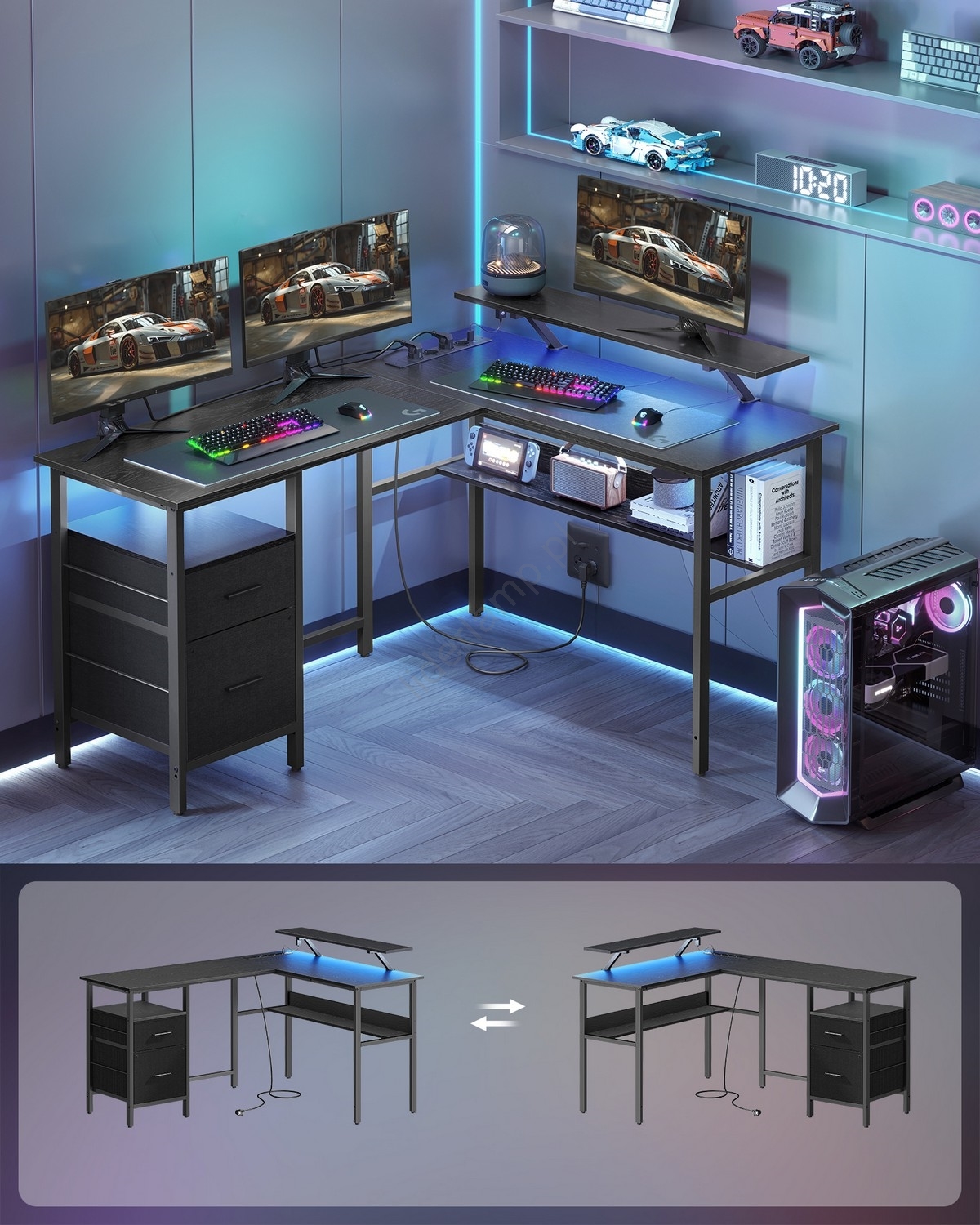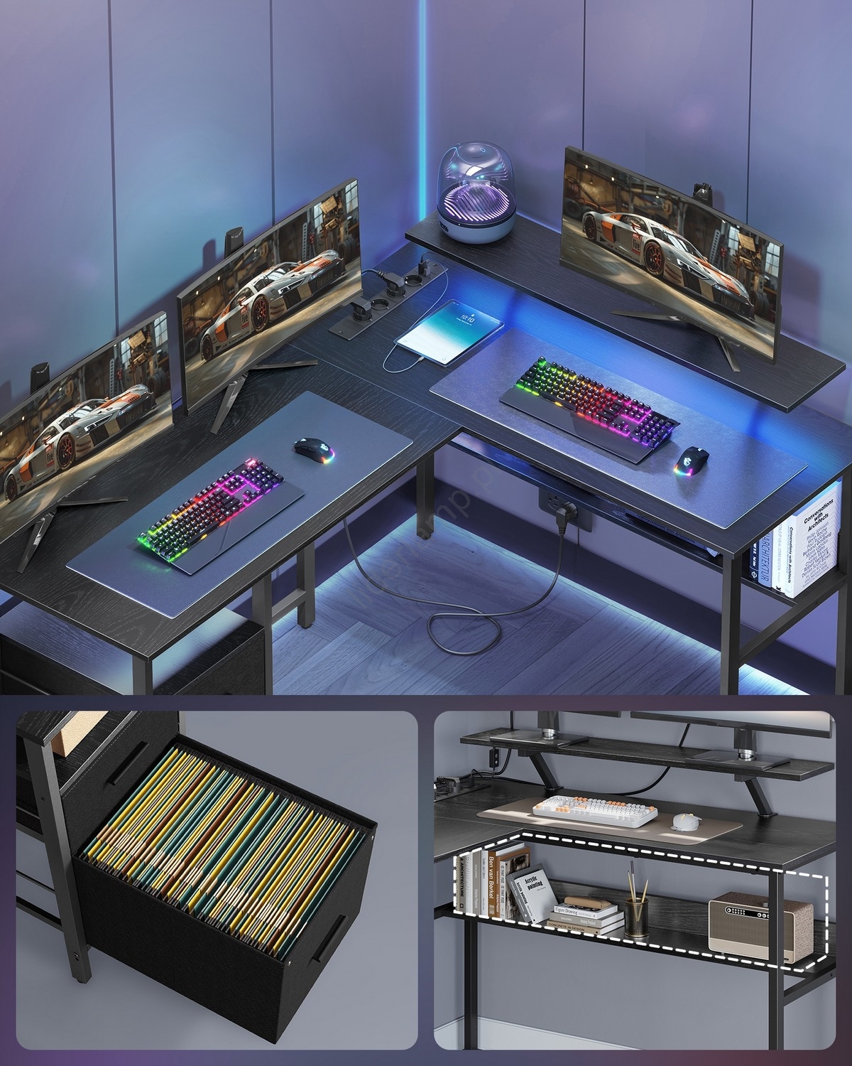 • Biurko narożne w kształcie L z podświetleniem LED SOLEA