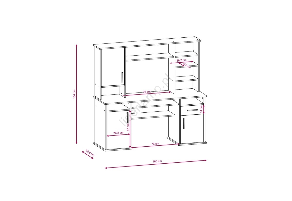 • Górna część zapewnia dodatkowe półki na książki, dekoracje lub artykuły biurowe, dzięki czemu jest idealne do przestrzeni roboczych wymagających funkcjonalności i porządku.