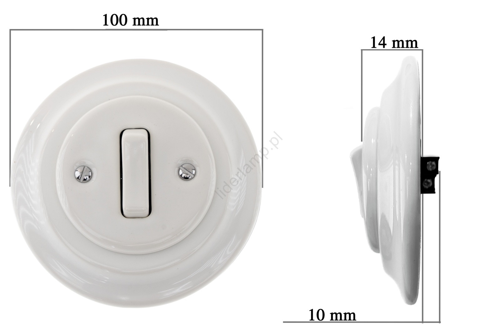Bohemia-Design - Retro porcelanowy pojedynczy włącznik z ramką nr 6, biały
