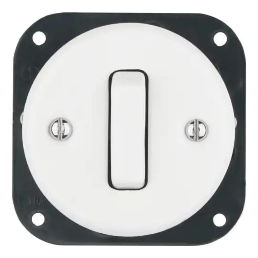 Bohemia-Design - Porcelanowy retro pojedynczy wyłącznik bez ramki nr. 6 biały