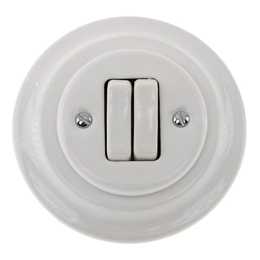 ReviewsWidget_ReviewsAboutUs Bohemia-Design - Retro porcelanowy podwójny włącznik z ramką nr 5 biały | Liderlamp.pl