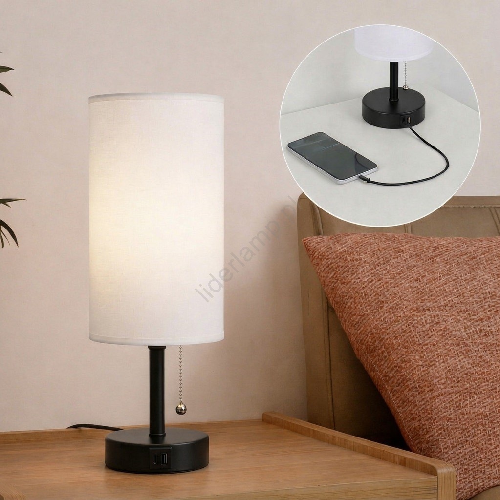 • Brilagi - Lampa stołowa z portem USB TABLON 1xE27/25W/230V czarna/biała
