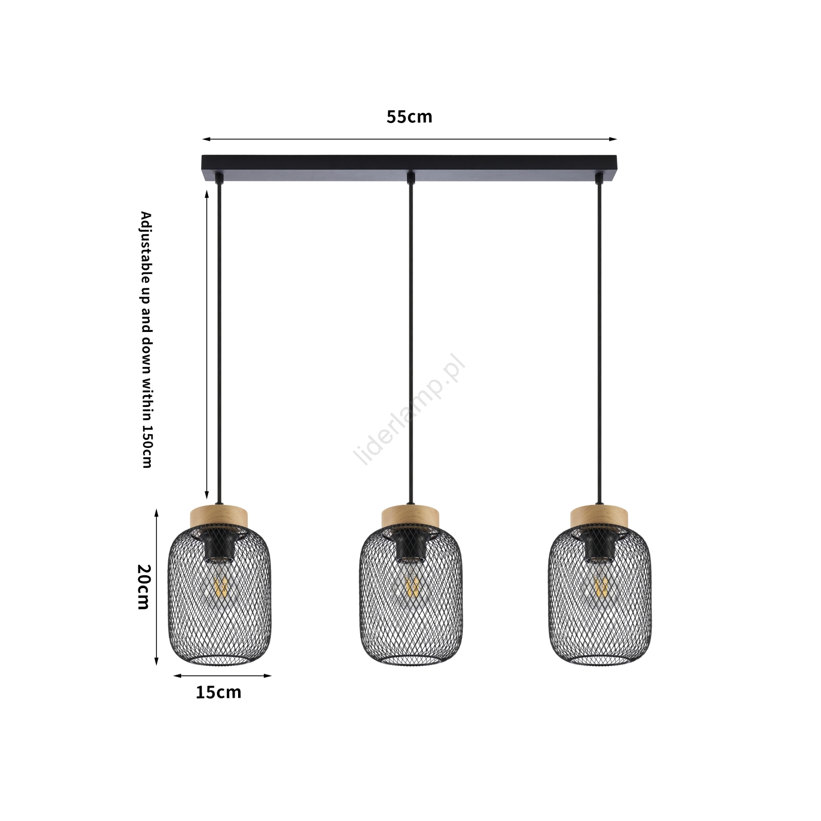 Brilagi - Lampa wisząca na lince BASKLITE 3xE27/15W/230V, drewno kauczukowe/czarna charakteryzuje się ładnym i funkcjonalnym designem.  Do lampy pasuje żarówka z trzonkiem E27. Tutaj kupisz inne żarówki w korzystnych cenach. Będziesz mieć ciekawy dodatek do swojego domu.