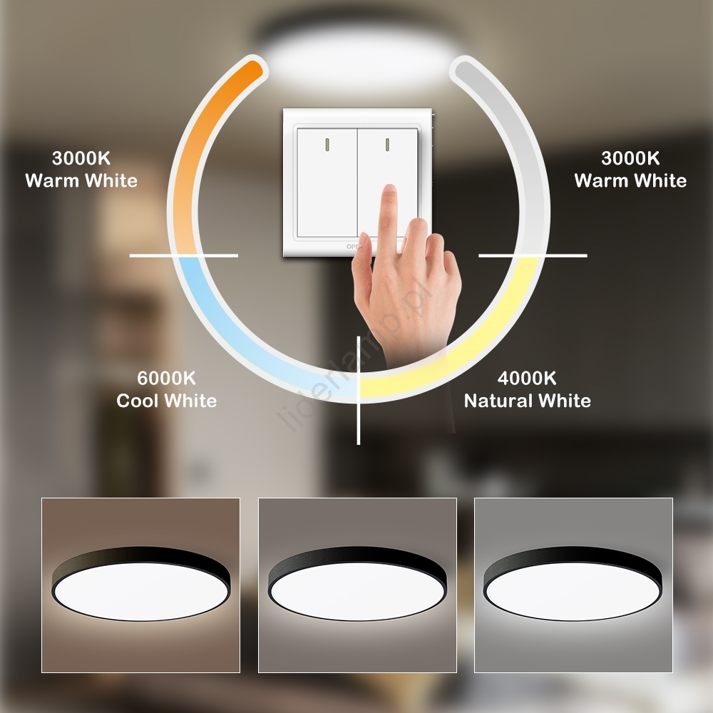 • Zmiana temperatury barwowej krokowo prostym naciśnięciem włącznika ściennego.