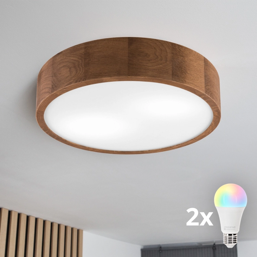 Brilagi - LED RGBW Ściemnialna oprawa sufitowa CARVALHO 2xE27/15W/230V 2700-6500K Wi-Fi dąb śr. 37,5 cm