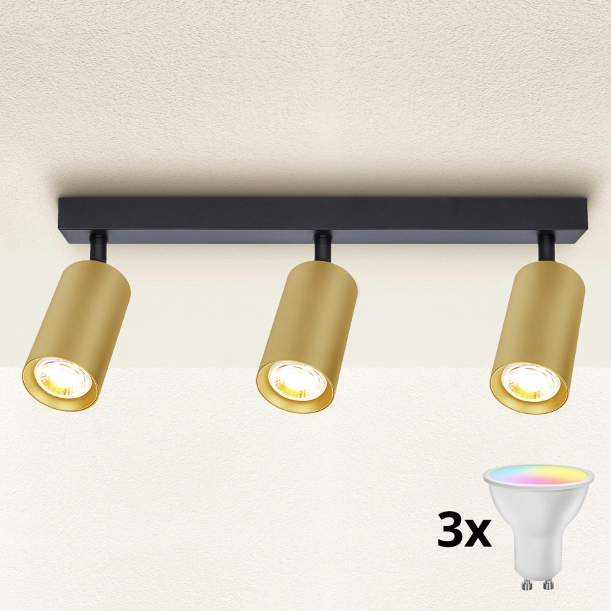 Brilagi - LED RGBW ściemnialna oprawa punktowa SELE GOLDEN 3xGU10/6W/230V 3000K czarna/złota + pilot zdalnego sterowania