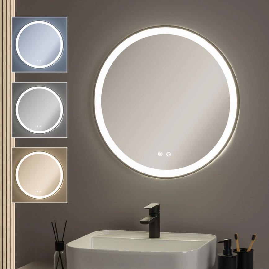 • Brilagi - LED ściemnialne podgrzewane lustro łazienkowe z podświetleniem ALU PRO LED/18W/230V śr. 60 cm 3000/4000/6500K IP44 błyszczący chrom CRI 90