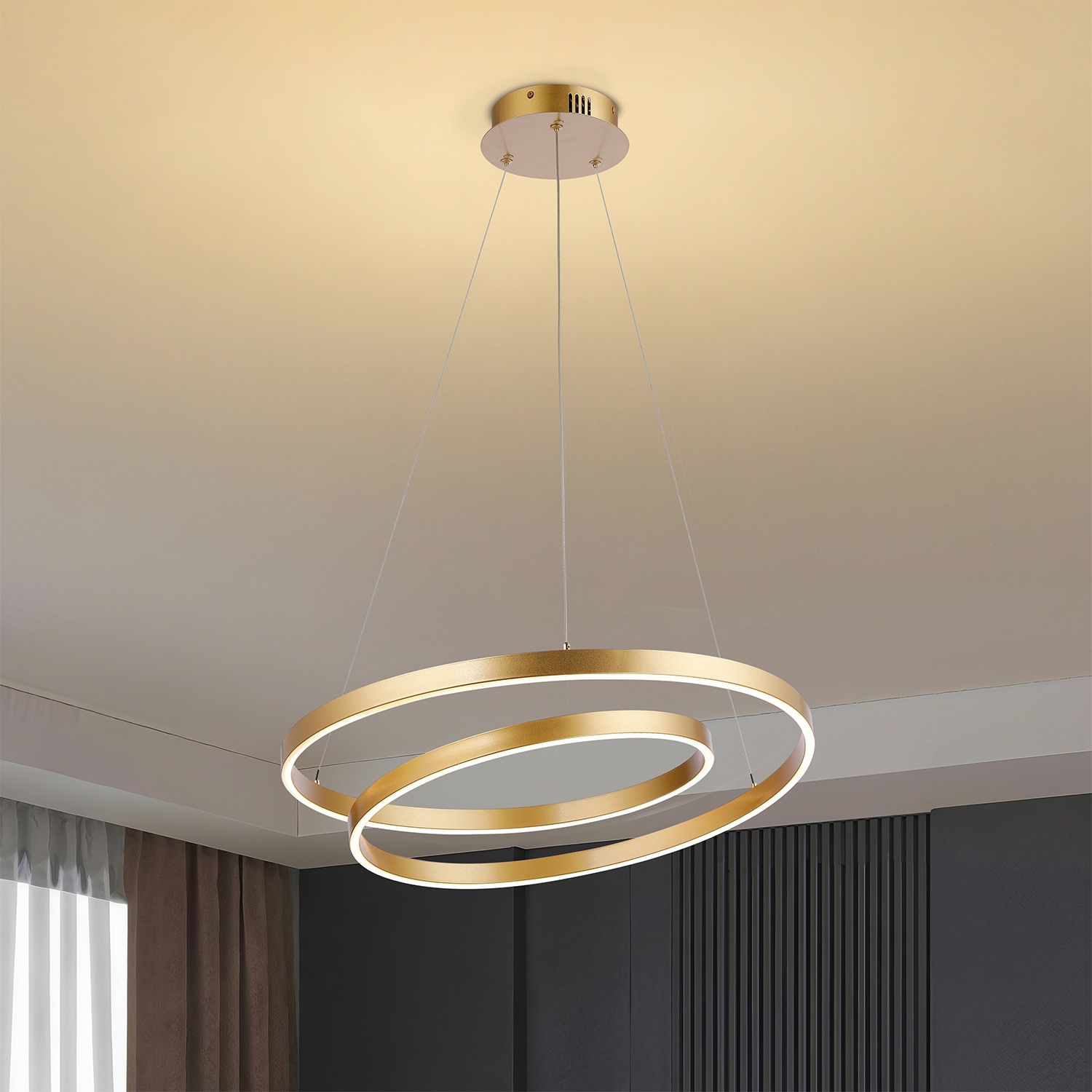 • Brilagi - Ściemniana lampa wisząca na lince TWISTER LED/48W/230V 3000–6000K śr. 50 cm, złota + pilot zdalnego sterowania