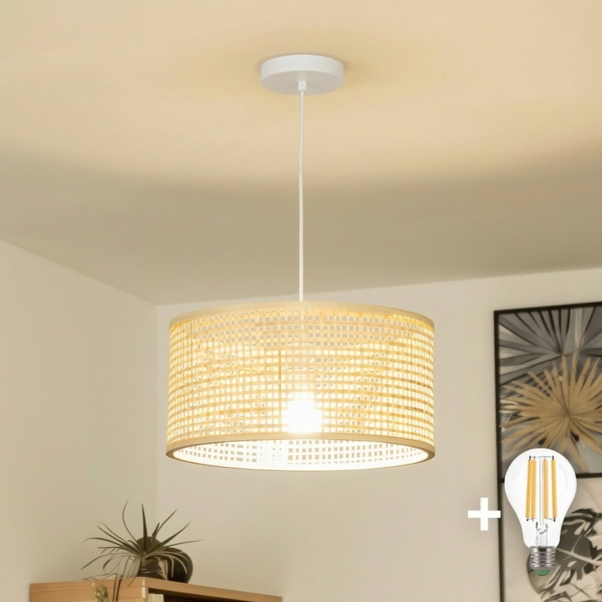 Brilagi - LED żyrandol na lince CERIA BOHO 1xE27/40W/230V śr. 40 cm z bambusa charakteryzuje się ładnym i funkcjonalnym designem.  Do lampy pasuje żarówka z trzonkiem E27. Tutaj kupisz inne żarówki w korzystnych cenach. Będziesz mieć ciekawy dodatek do swojego domu.