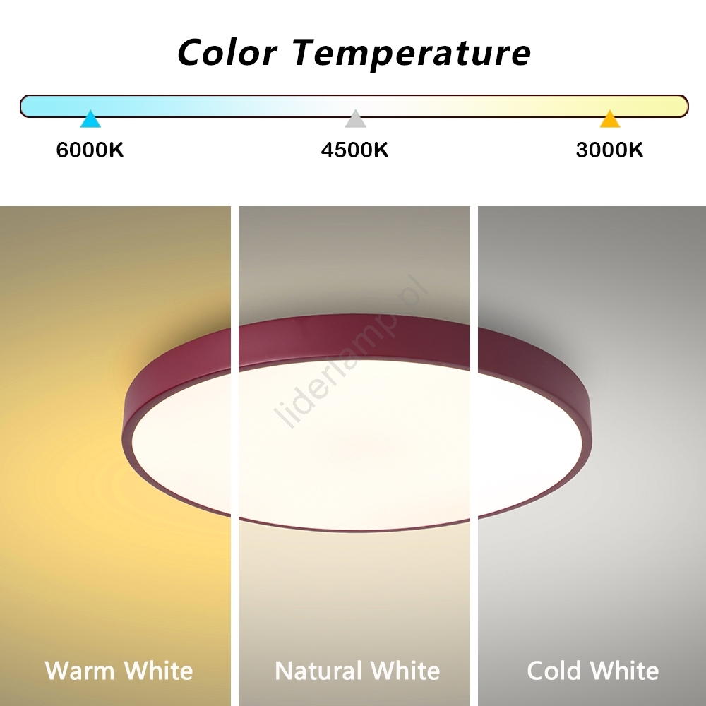 • 6000K – Zimne białe światło (jasne, pobudzające światło, odpowiednie do koncentracji).
