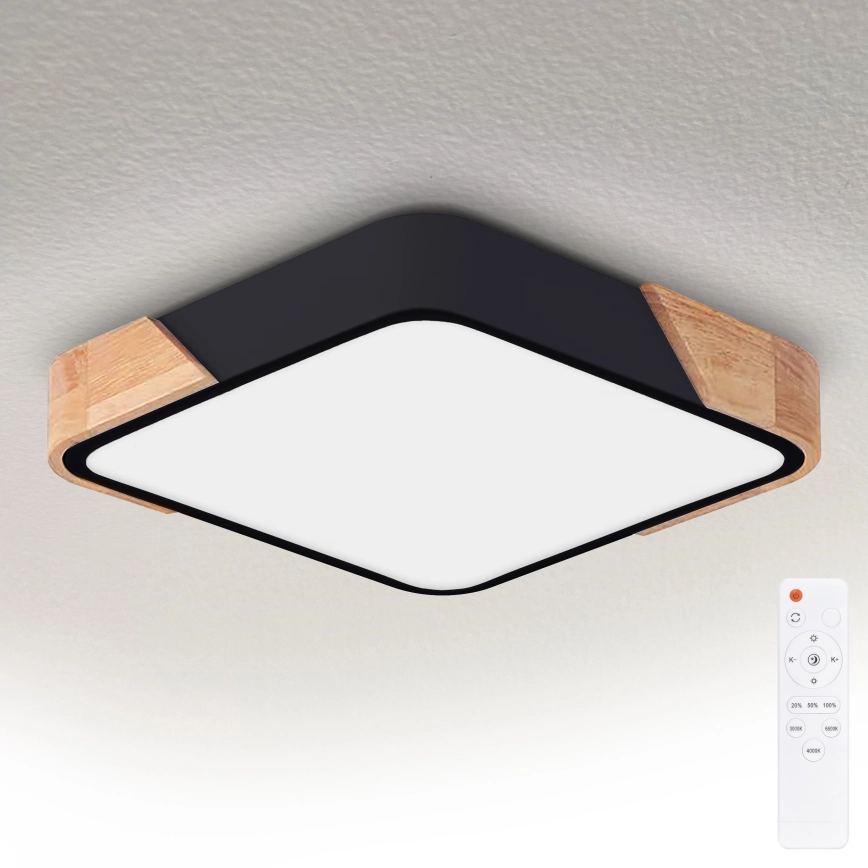 Brilagi - ściemnialna oprawa sufitowa LED PILANA LED/48W/230V 3000-6500K dąb/czarny 42x42 cm + pilot zdalnego sterowania