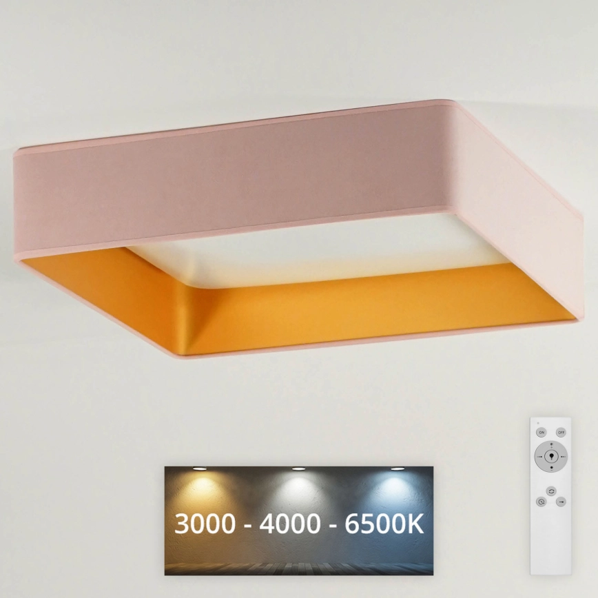 • Brilagi - LED ściemnialna lampa sufitowa VELVET SQUARE LED/24W/230V 43x43 cm 3000/4000/6500K + zdalne sterowanie różowa