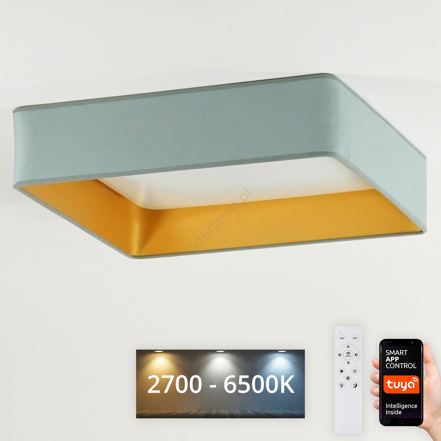• Brilagi - ściemnialna lampa sufitowa VELVET SQUARE SMART LED/36W/230V 60x60 cm 2700-6500K Wi-Fi Tuya + zdalne sterowanie, kolor miętowy