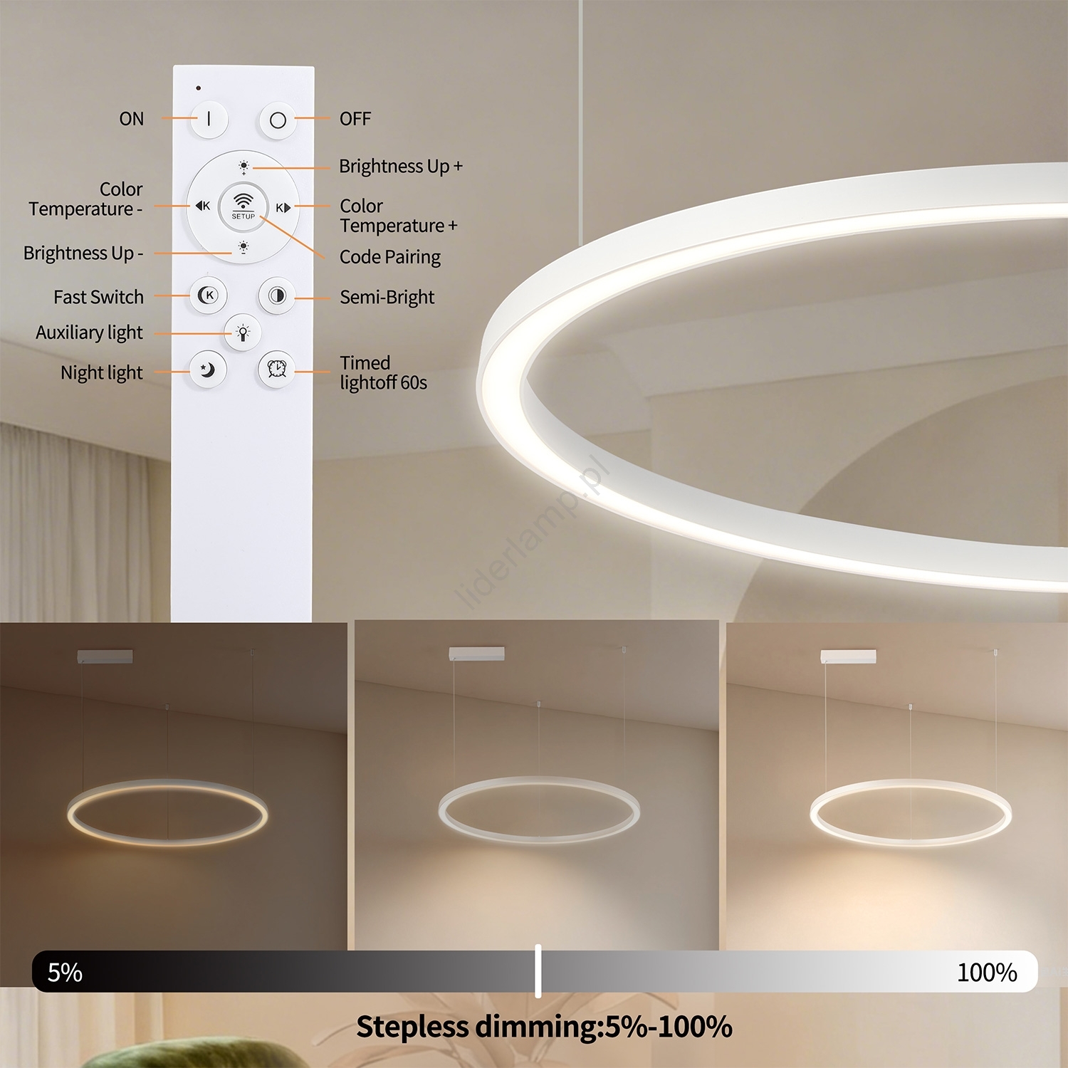 ReviewsWidget_ReviewsAboutUs Brilagi - ściemnialny LED żyrandol na lince PORTOFINO LED/60W/230V śr. 80 cm biały + pilot | Liderla