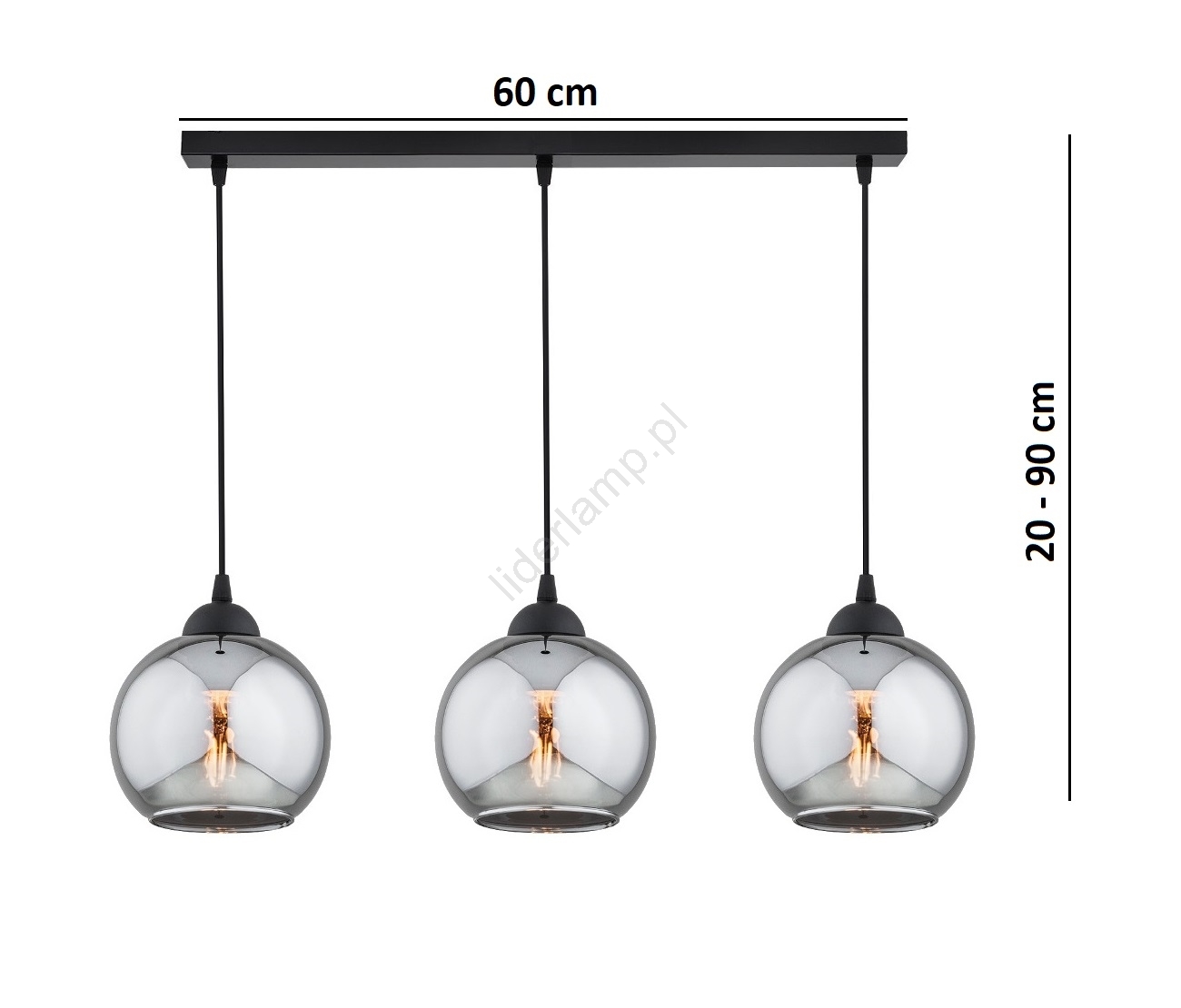 Brilagi - Żyrandol na lince 3xE27/60W/230V czarny/dymny szary