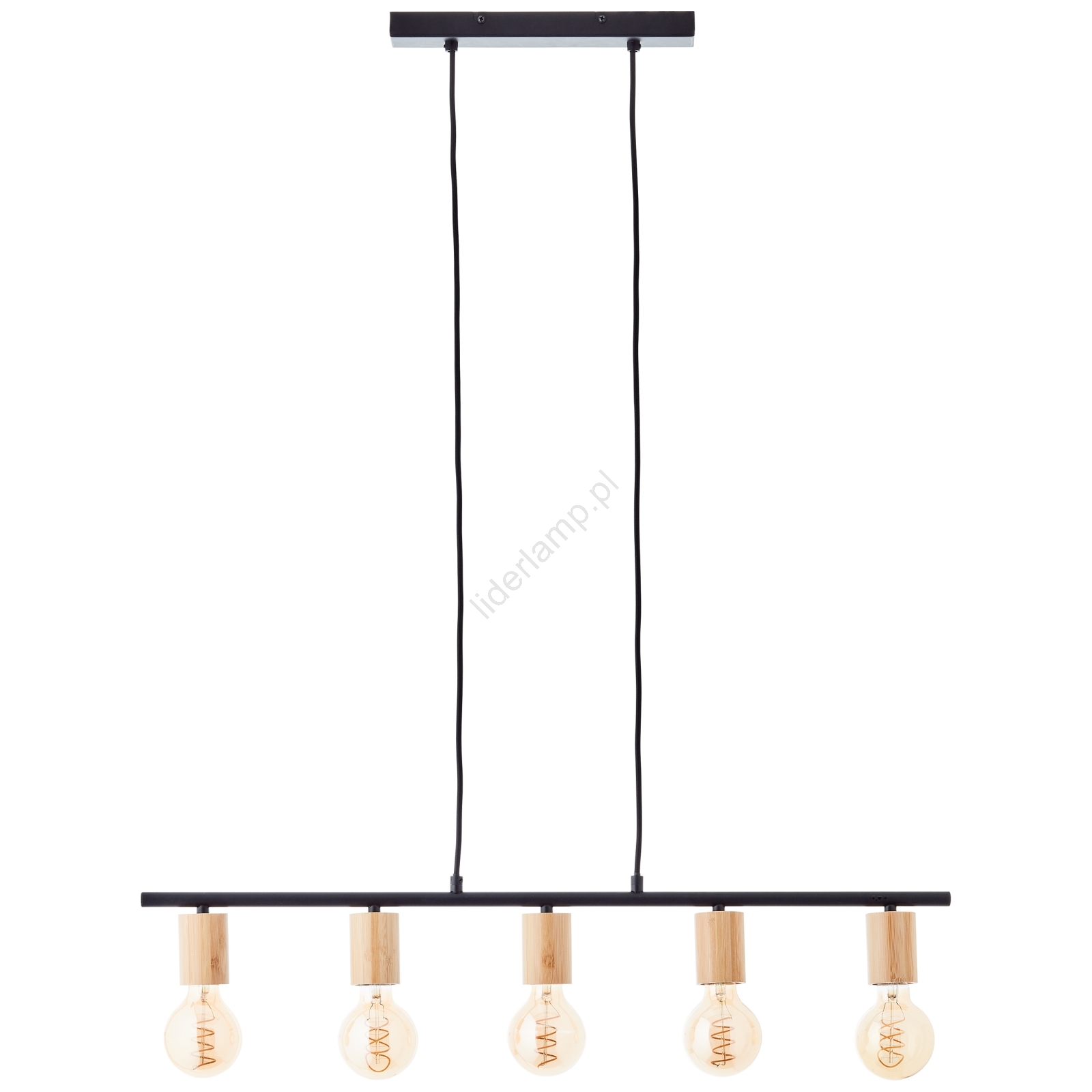 Brilliant - Żyrandol na linkach KERRY 5xE27/40W/230V czarny/bambus charakteryzuje się ładnym i funkcjonalnym designem.  Do lampy pasuje żarówka z trzonkiem E27. Tutaj kupisz inne żarówki w korzystnych cenach. Będziesz mieć ciekawy dodatek do swojego domu.