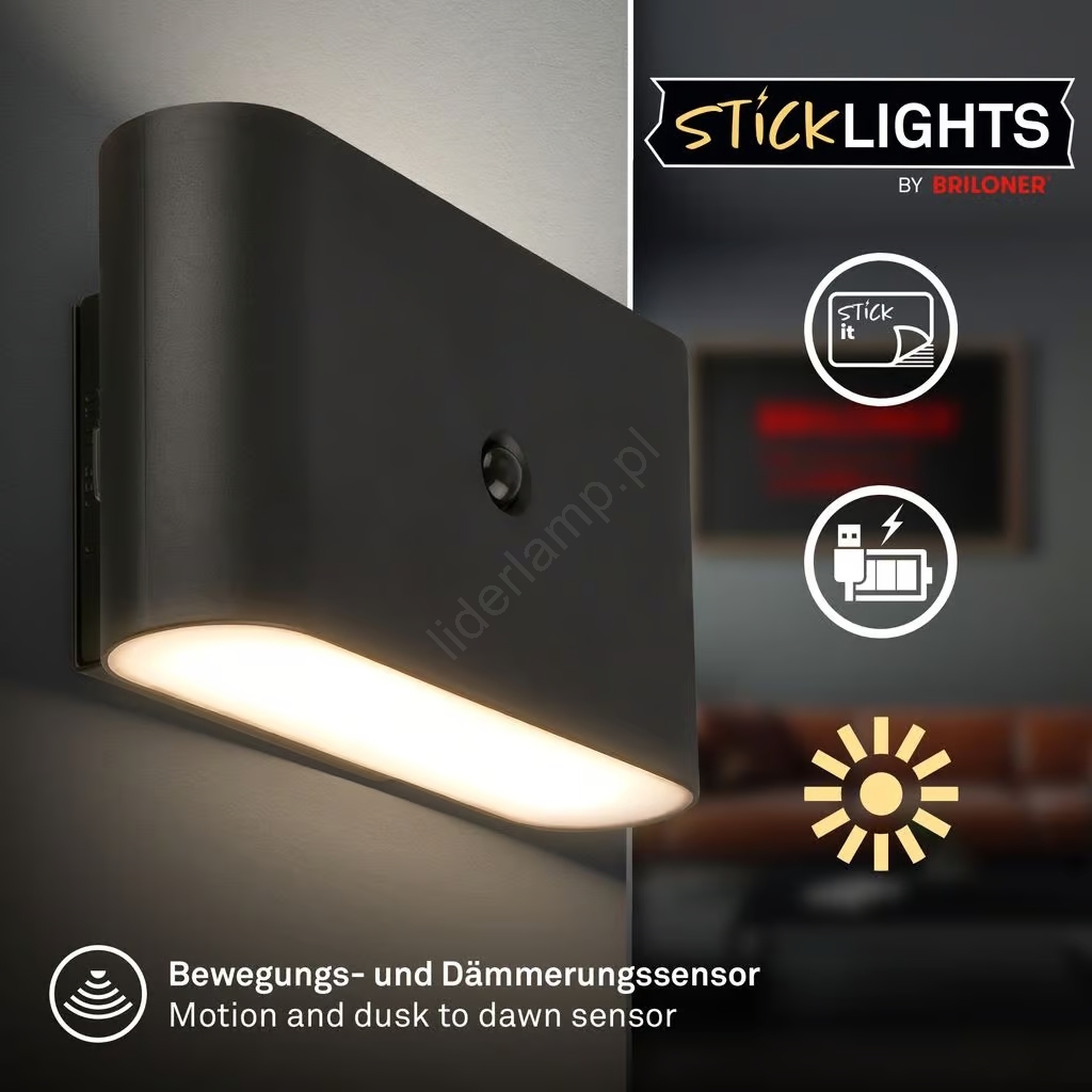 ReviewsWidget_ReviewsAboutUs Briloner 3878015 - LED ładowalna lampa ścienna z czujnikiem CHAT LED/3W/5V 2000 mAh czarna | Liderla
