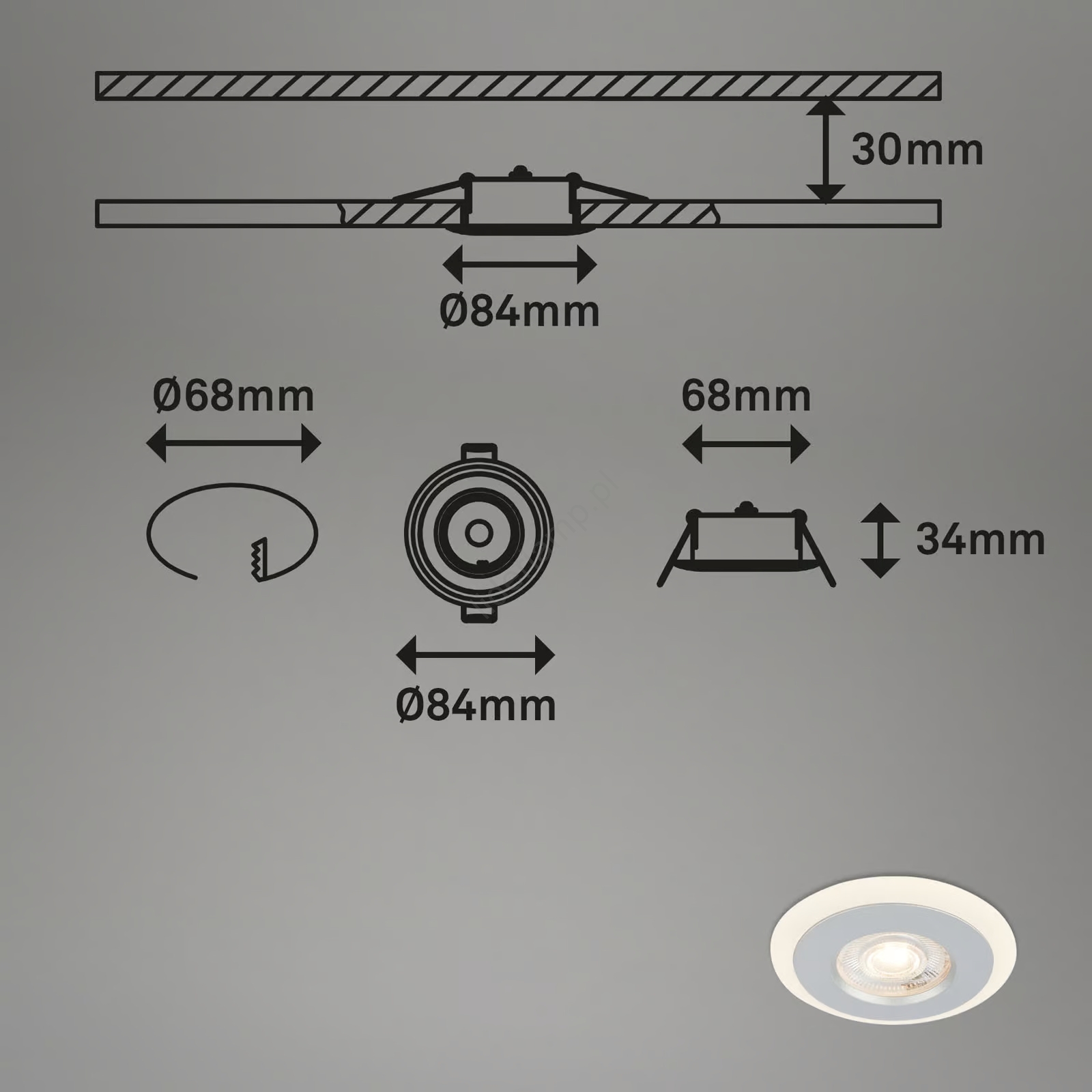 • Briloner 7039036 - ZESTAW 3x LED: wpuszczana oprawa sufitowa do łazienki, LED/5W/230V, IP44, biała