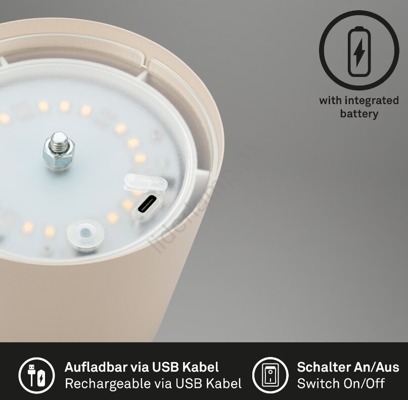 ReviewsWidget_ReviewsAboutUs Briloner 7508011 - Ładowalna, ściemniana lampka biurkowa LED/2,5W/5V IP44 beżowa | Liderlamp.pl
