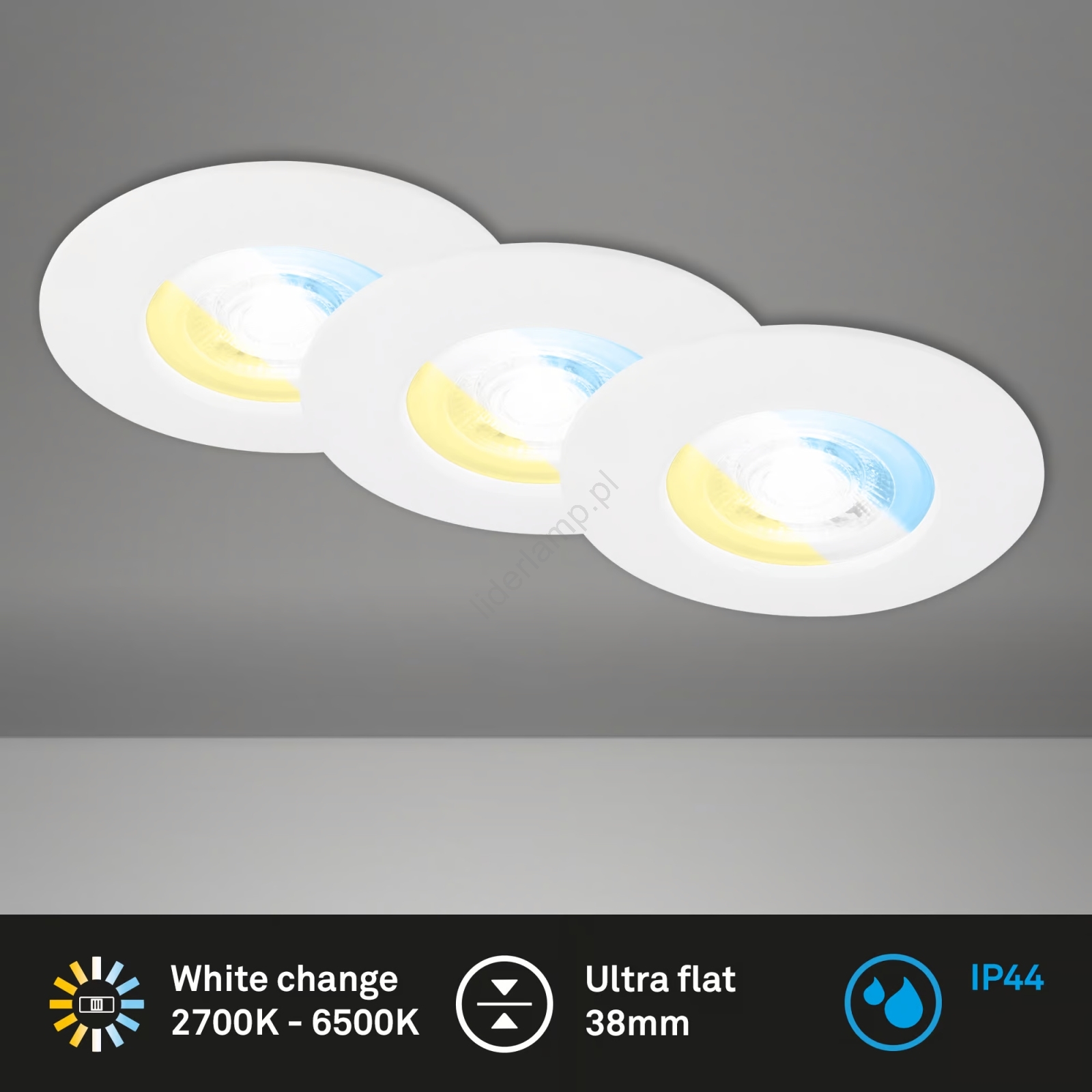 • Briloner 7605032 - Zestaw 3 opraw sufitowych LED wpuszczanych do łazienki, 4,9 W, 230 V, 2700/4000/6500 K, IP44, matowy chrom