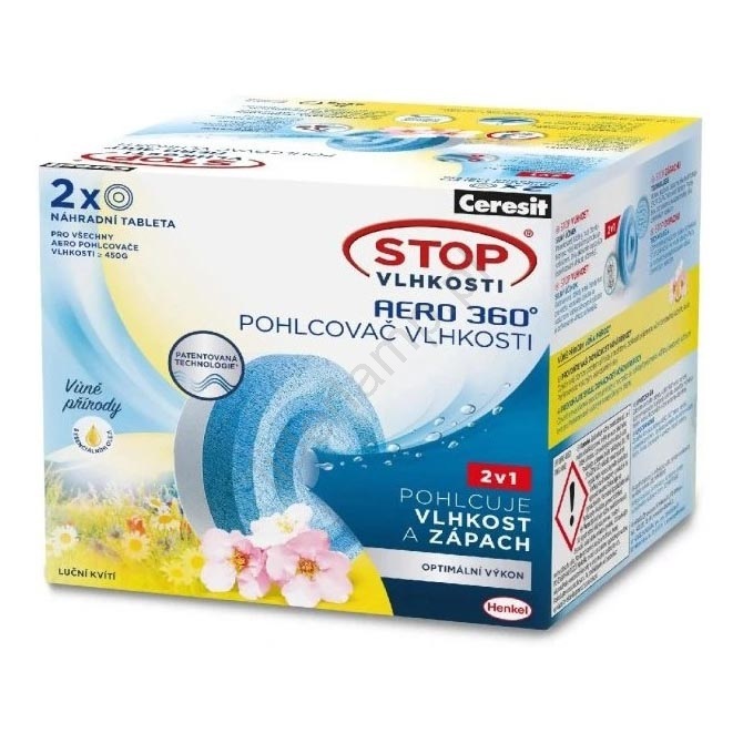 Ceresit - Tabletki do osuszacza 2w1 AERO 360° 2x 450 g kwiaty łąkowe