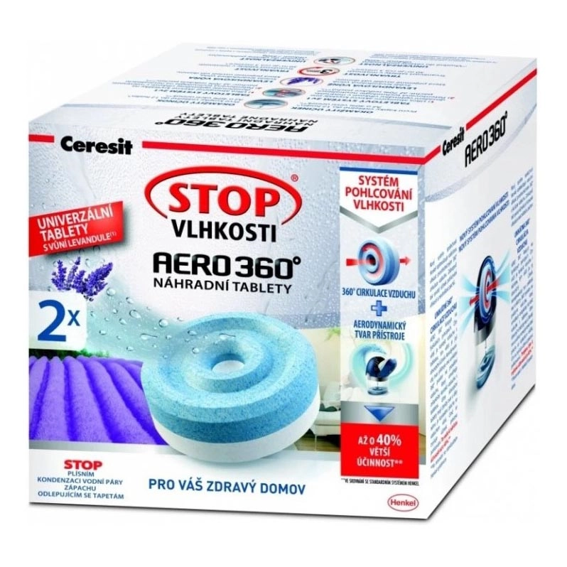 Ceresit - Tabletki do pochłaniacza wilgoci 2 w 1 AERO 360° 2x 450 g lawendowy ogród