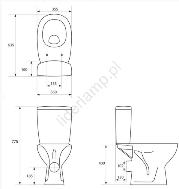 • Wolnostojący sedes z wysokiej jakości ceramiki.