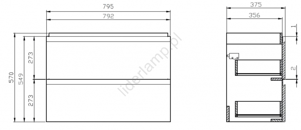 • Szafka posiada dwie pojemne szuflady z cichym domykaniem i ukrytymi uchwytami.