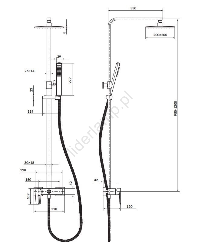 • Zestaw wyposażony w słuchawkę prysznicową z tworzywa ABS.