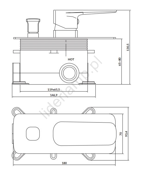 • Bateria prysznicowa jednouchwytowa do montażu podtynkowego.