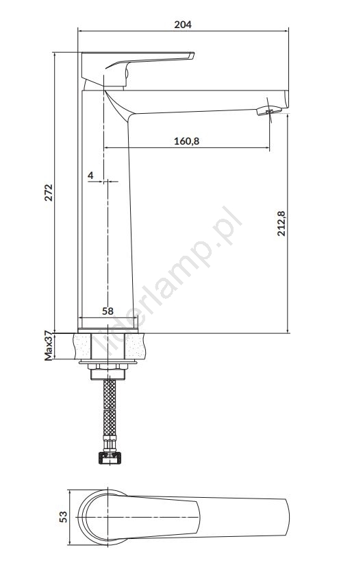 • W zestawie znajdują się przyłącza wężowe o długości 40 cm.