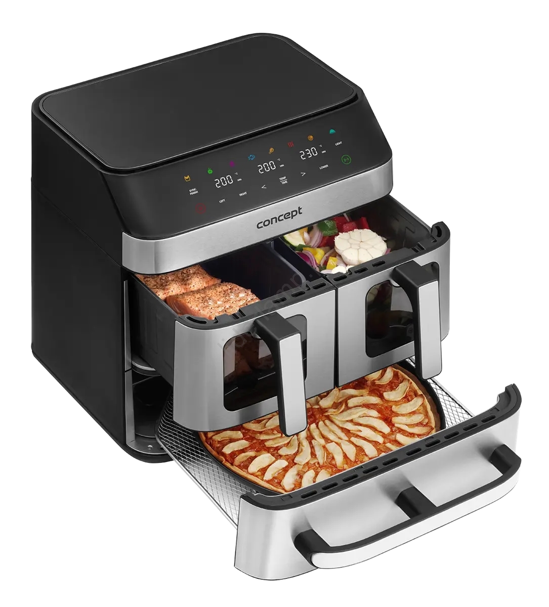 Concept FR9000 - Frytkownica beztłuszczowa PIZZA TRIO 18,5 l 2700W/230V stal nierdzewna/czarny