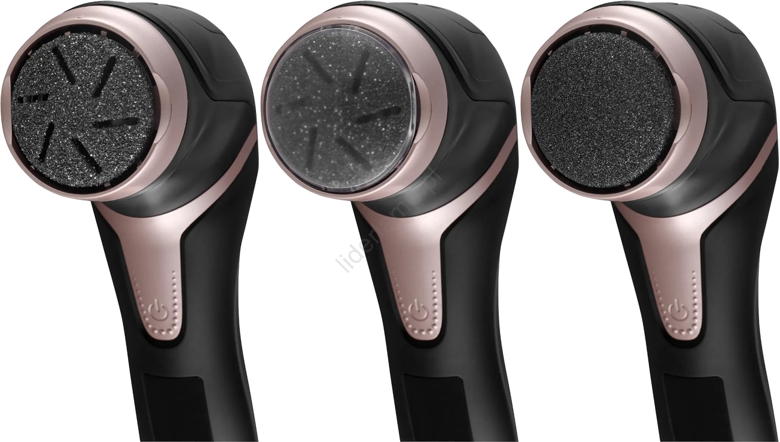 • Delikatna końcówka nadaje się do pielęgnacji wrażliwych miejsc, średnia jest idealna do codziennego użytku, a gruboziarnista do suchej i zrogowaciałej skóry.