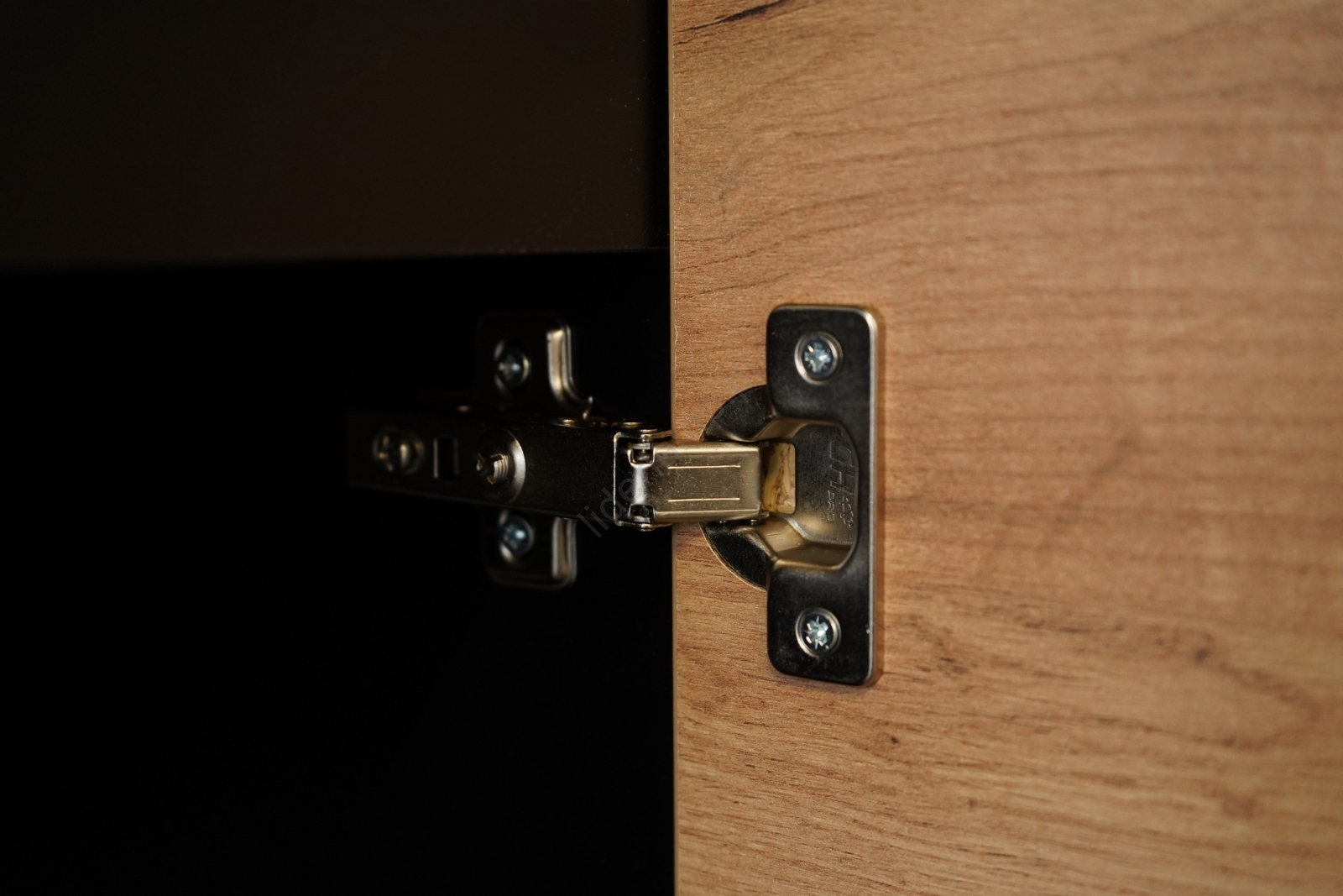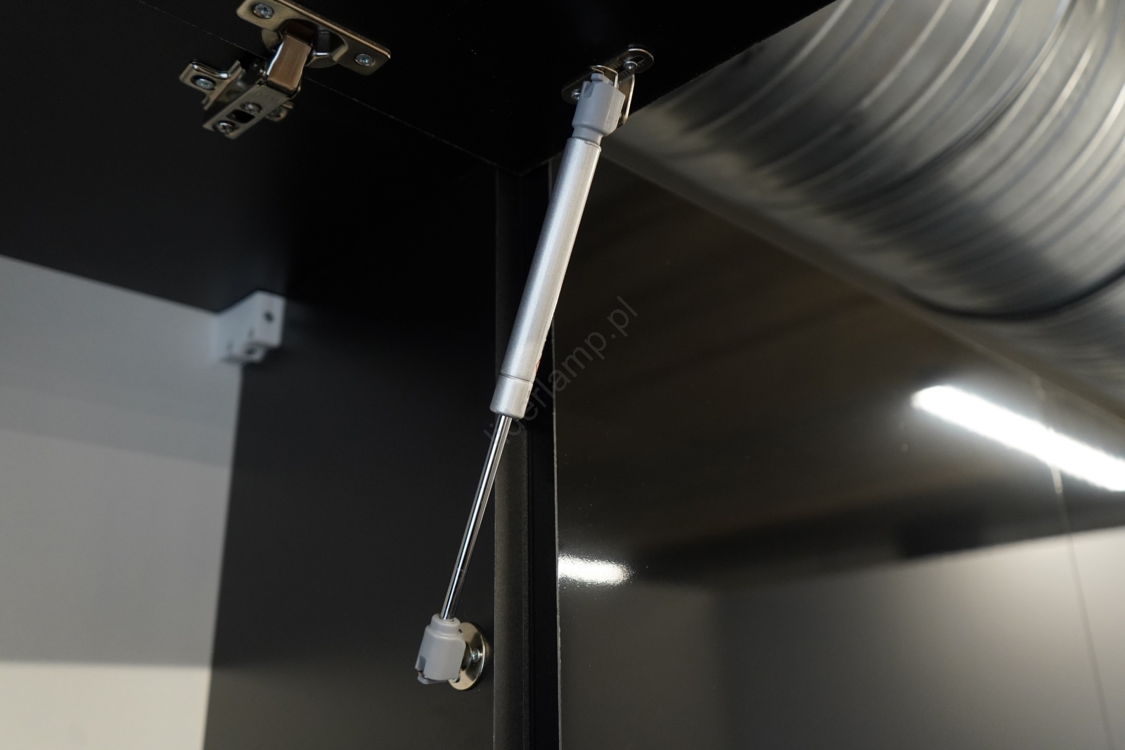 • Górne szafki wyposażone są w podnośniki gazowe, w szufladach zamontowano wysokiej jakości metalowe, w obudowieprowadnice.